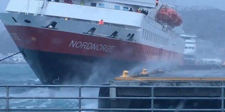 Sipas mediave të huaja, përcjell Telegrafi, bëhet fjalë për pamje që tregojnë një anije ekspedite që po lundronte drejt portit të Bodos në Norvegji, derisa u godit nga erërat e forta, ditë më parë.